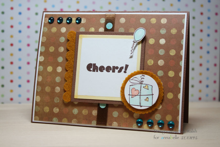Stamps: Annabelle Stamps, Thoughtful Stems, Sentimental Bluebells (sentiment). Card: American Crafts tan from Autumn Selection, GKD PL pure white, DP Websters Pages. Ink: SU Not Quite Navy. Embellishments: Annabelle Stamps sprinkles in blackcurrant,copper eyelet, jute. Equipment: Spellbinders Labels 1 Die, QuicKutz scalloped die, Provocraft Silent Setter, Cuttlebug embossing folder Swiss dots.